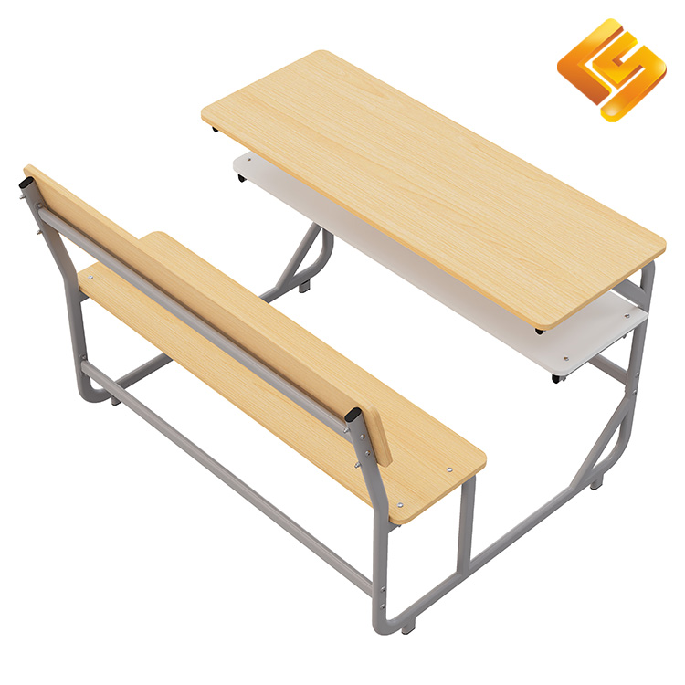 Biroul dublu pentru studenți Gray C-Bend este o soluție de mobilier sofisticată și eficientă din punct de vedere al spațiului, concepută pentru a facilita învățarea prin colaborare în mediile educaționale moderne. Această unitate integrată oferă o stație de lucru comună completă pentru doi studenți, cu un birou continuu și scaune atașate. Elementul său cel mai distinctiv este suportul piciorului curbat grațios, în formă de C, fabricat din țeavă de oțel îndoită și finisat într-un strat versatil de pulbere gri mat, care este combinat elegant cu suprafețe calde din lemn. Acest design reprezintă o fuziune atentă a atractivității estetice și a integrității structurale, poziționându-l ca o piesă extrem de funcțională a mobilierului școlar. Este proiectat cu experiență pentru a răspunde cerințelor mobilierului general pentru clasă, oferind un răspuns practic și elegant pentru setările care încurajează munca în echipă, discuțiile și utilizarea optimă a spațiului fizic.